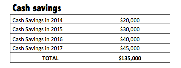 - 2014: Saved $20,000