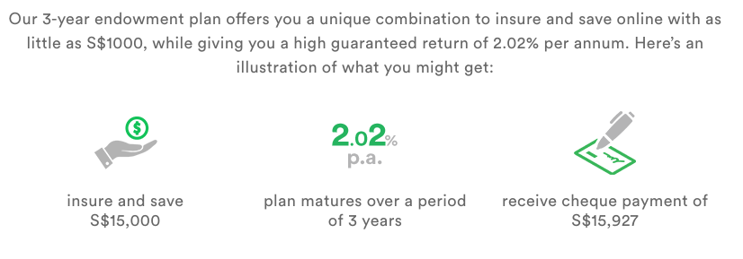 High guaranteed annual returns of 2.02% p.a. for a 3-year endowment plan.