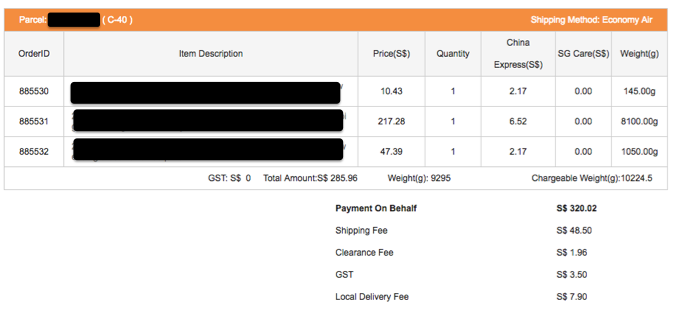 I’ve been using SGshop to help me with my orders on Taobao not only to overcome the language barrier with the sellers, but also to ensure my items arrive safely. SGshop helps to inspect my goods in China for any defects, then combine and repack my parcels so that I save more on shipping fees. This is important because if there are defective goods, they can return and get a refund from the seller before it gets shipped over to Singapore (by then it’ll be too late, and too expensive to send it back for a refund).