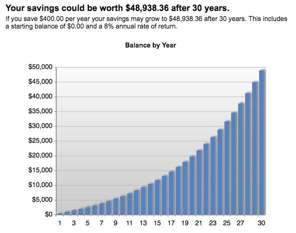 In fact, it would even be okay to say that after 10 years, you effectively receive >$400 from interest earned at 8% growth without any extra deposits.