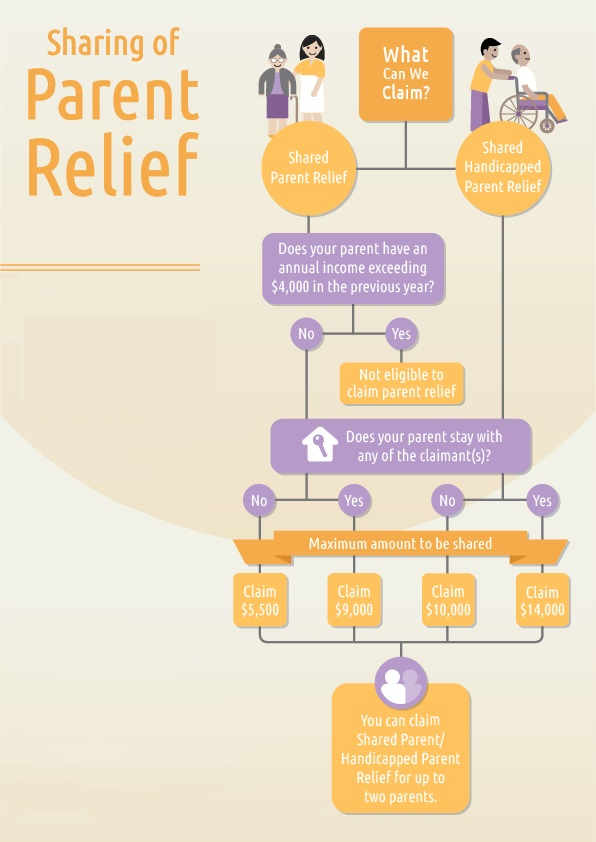 If you have or parents, living with you who are older than 55 and earn no more than $4,000 annually, you can also claim up to $9,000 tax relief for supporting them (or up to $14,000 if they’re handicapped, in which case the income requirement doesn’t quite apply). But if you have siblings who are claiming for the same, you’ll need to split that evenly with them. There are also tax reliefs if your grandparents stay with you.