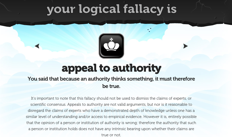 The argument from authority fallacy reminds me to always pay less attention to the messenger and more attention to the message. This joke puts it perfectly: