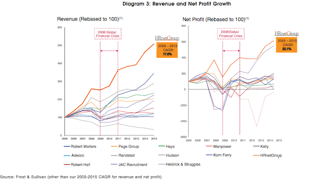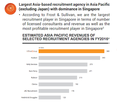 My initial doubt regarding HRnetGroup is: why did the company chose equity financing over debt financing for its expansion? Given its zero debt, the company could get a much lower cost of debt to finance its business expansion and generate additional tax shield for its profit. One could not help but suspect its IPO-price is overvalued compared to its intrinsic value. It is also not guaranteed that the company will not issue debt (which will have seniority claims over equity) in the future.