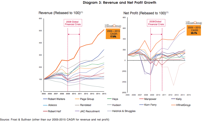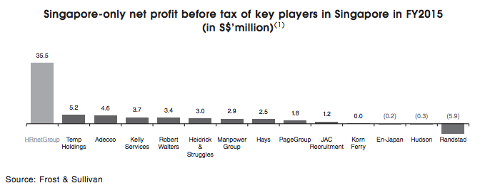 Other clients include Bundwealth, Olympus, Acer and other top names in the banking and telecommunications sector. Yet, HRnetGroup does not have the problem of key customer risk, as even their top 10 customers combined only contribute 20% of their total revenue. They claim to have over 2000 clients so it doesn’t seem like they have much problem courting new customers at all.