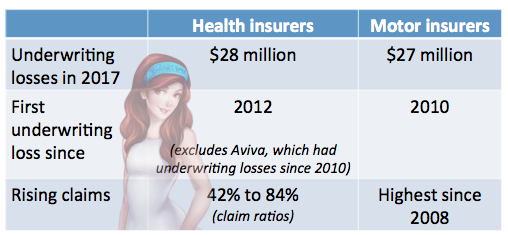 The industry chalked up underwriting losses ranging from S$7.3 million to almost $30 million, with AIA and NTUC Income suffering the biggest hits. Even AXA, which only started selling ISPs and riders in the second half of 2016, suffered a considerable loss.