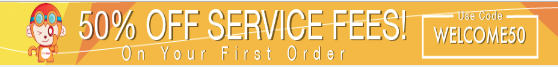 • WELCOME50” for 50% off service fees