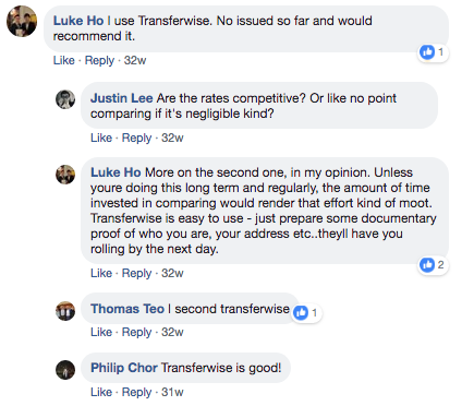 If you’re a student studying overseas, you can get your parents to remit your money to you using TransferWise. Whether you’re studying in Australia, US or the UK, TransferWise has local accounts in pretty much all the major countries. Given how many Singaporean students go on overseas exchanges and need to pay for tuition, accommodation and other living expenses, TransferWise should be quite helpful in this case.