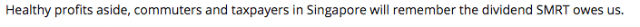 My main gripe about the Mothership article is that it appears misleading to a novice investor as it presents SMRT in a highly favourable light, especially when one reads sentences like these: