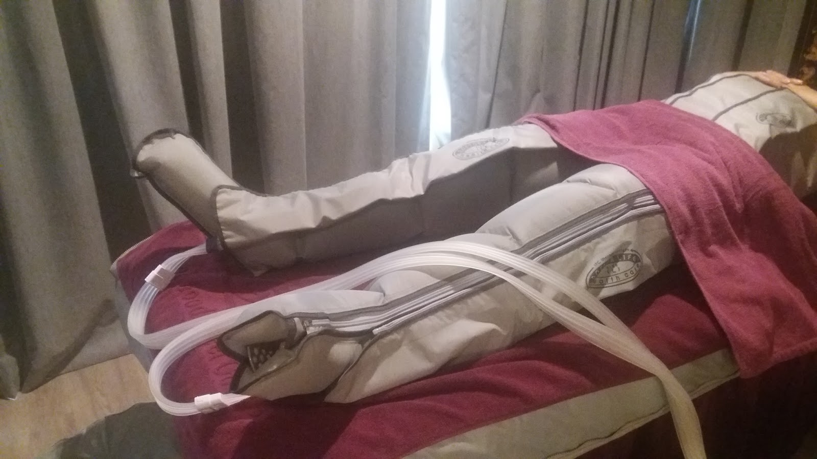 Lymphatic Air Therapy – a vacuum-like treatment which uses air to help increase lymphatic draining. Healthy lymphatic drainage is needed to remove waste and toxins from the blood and this treatment is targeted to boost exactly that. It is also coupled with either the CryoWrap or ThermoBurn bandage system for the best fat-burning results. The treatment was extremely comfortable!