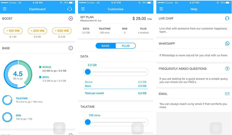 On Circles.Life, you can customize and change your plan anytime you want on their CirclesCare app. This covers tracking your usage statistics and costs, adding data or talktime, or even talking directly to the support team over live chat or Whatsapp for other issues.